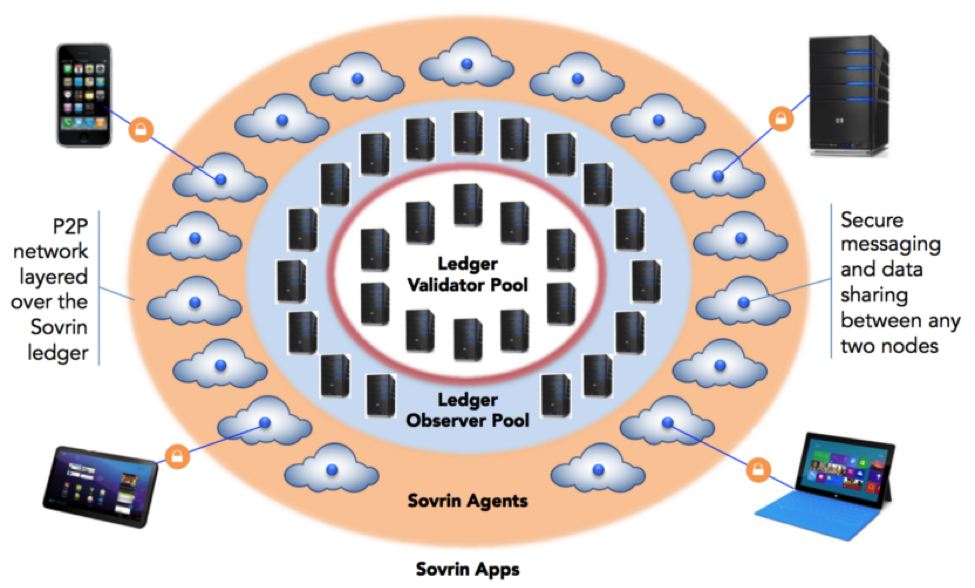 에이전트는 P2P 메시징 엔드포인트를 제공하여 일반적으로 자체 메시징 엔드포인트를 제공하지 않는 인디 클라이언트의 통신을 용이하게 합니다. Sovrin 에이전트는 다양한 장치에서 작동하는 여러 Sovrin 클라이언트 간에 메시지와 상태를 조정하며 Agent 는 Indy 키체인들의 암호화된 백업을 유지할 수 있고, ID 소유자를 위해 데이터를 단순하게 저장하고 공유할 수 있습니다. Indy에서 이 부분은 Hyperledger aries로 이전되었다.