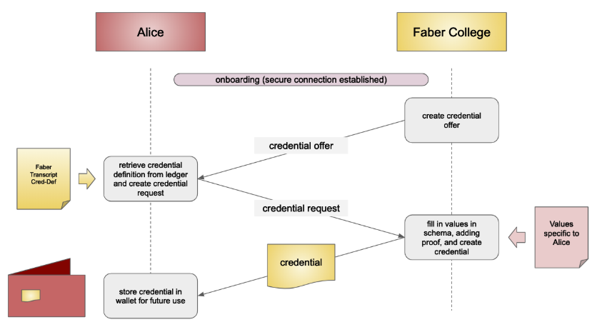 아래 글은 백서(The Technical Foundations of Sovrin) 중 First-Time Provisioning에 나오는데, 새로운 Sovrin ID의 최초 설정 (Provisioning)을 위한 기본 단계는 다음과 같다. (즉 엘리스가 자신의 ID를 만들고 DID를 Ledger에 등록하는 상황)