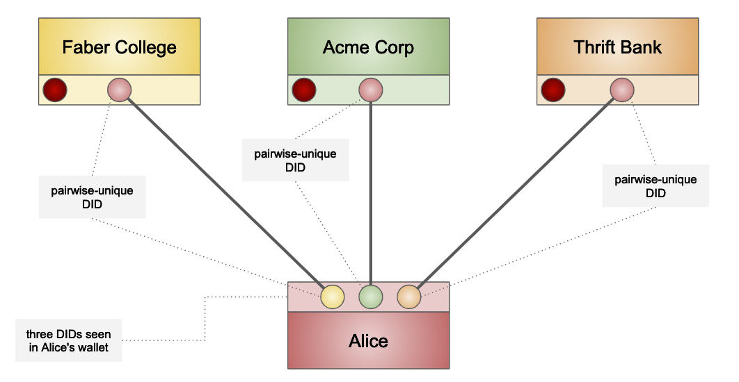 사용자는 자신의 ID에 대해 기억할만한 이름을 만들어서 원장에 DID 형식으로 변환하여 저장합니다. (당연히 개인키는 자신의 지갑에 분리되어 저장됨) DID는 탈중앙형 식별자로, pure DID는 암호학적 속성을 가지고 있지 않으며 version 4 UUID를 사용하여 유니크하며 원장에 저장되고 원장에서 읽을 수 있습니다.