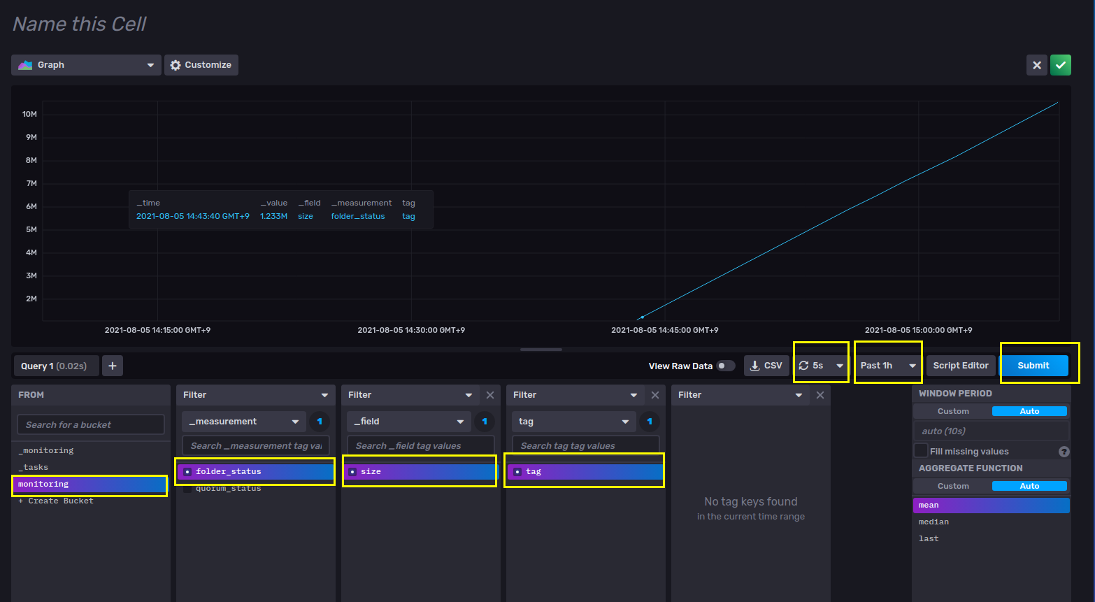 - filter (_measurement) : folder_status 를 선택한다. .