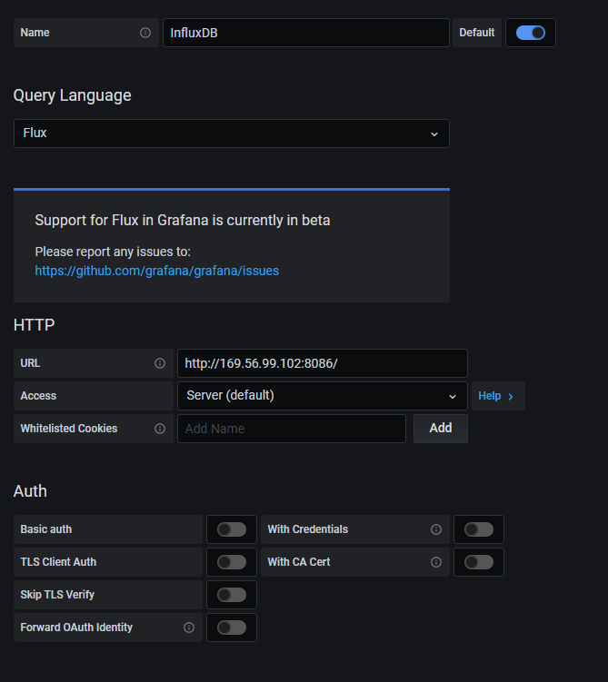 - HTTP에 URL을 http://your ip address:8086