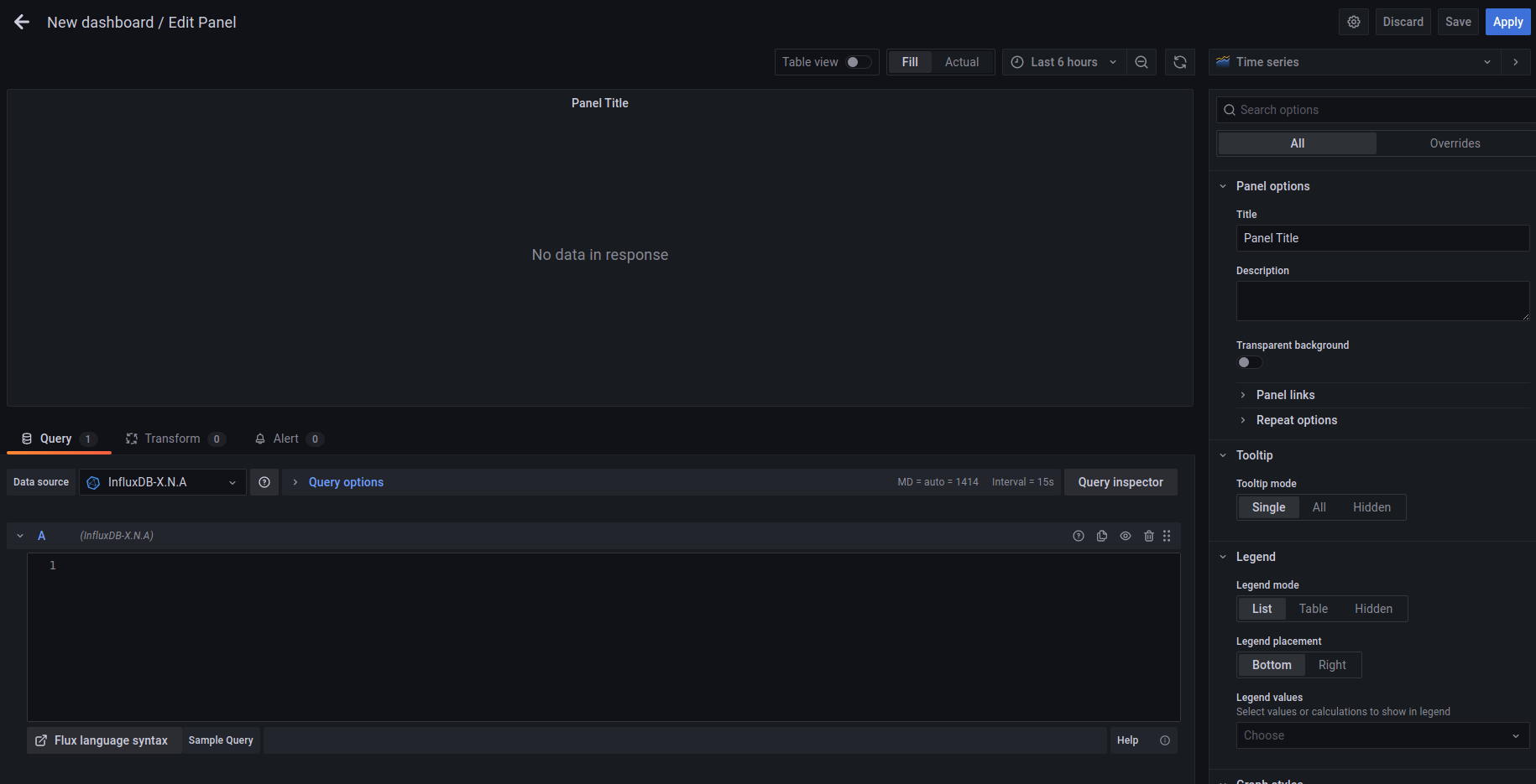- 여기선 Query Language 를 Flux로 한다. 이게 새로 추가된 방식이다. (InfluxDB 2.x대에는 이걸 써야한다)