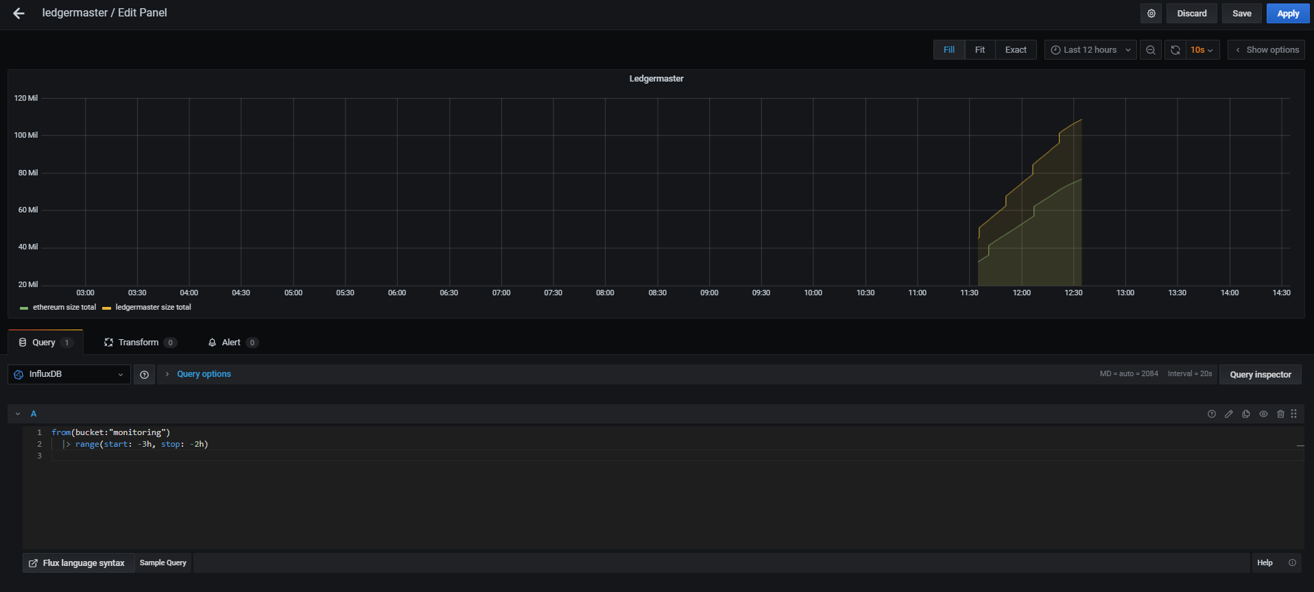 - bucket 으로 부터 3시간 이전 데이터부터 2시간 이전데이터까지를 보여준다.