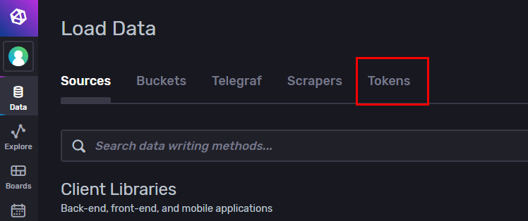 간략히 설명하면 UI에서 Data -> Tokens를 가면 발급받을 수 있다. (아래 빨간색 사각형)